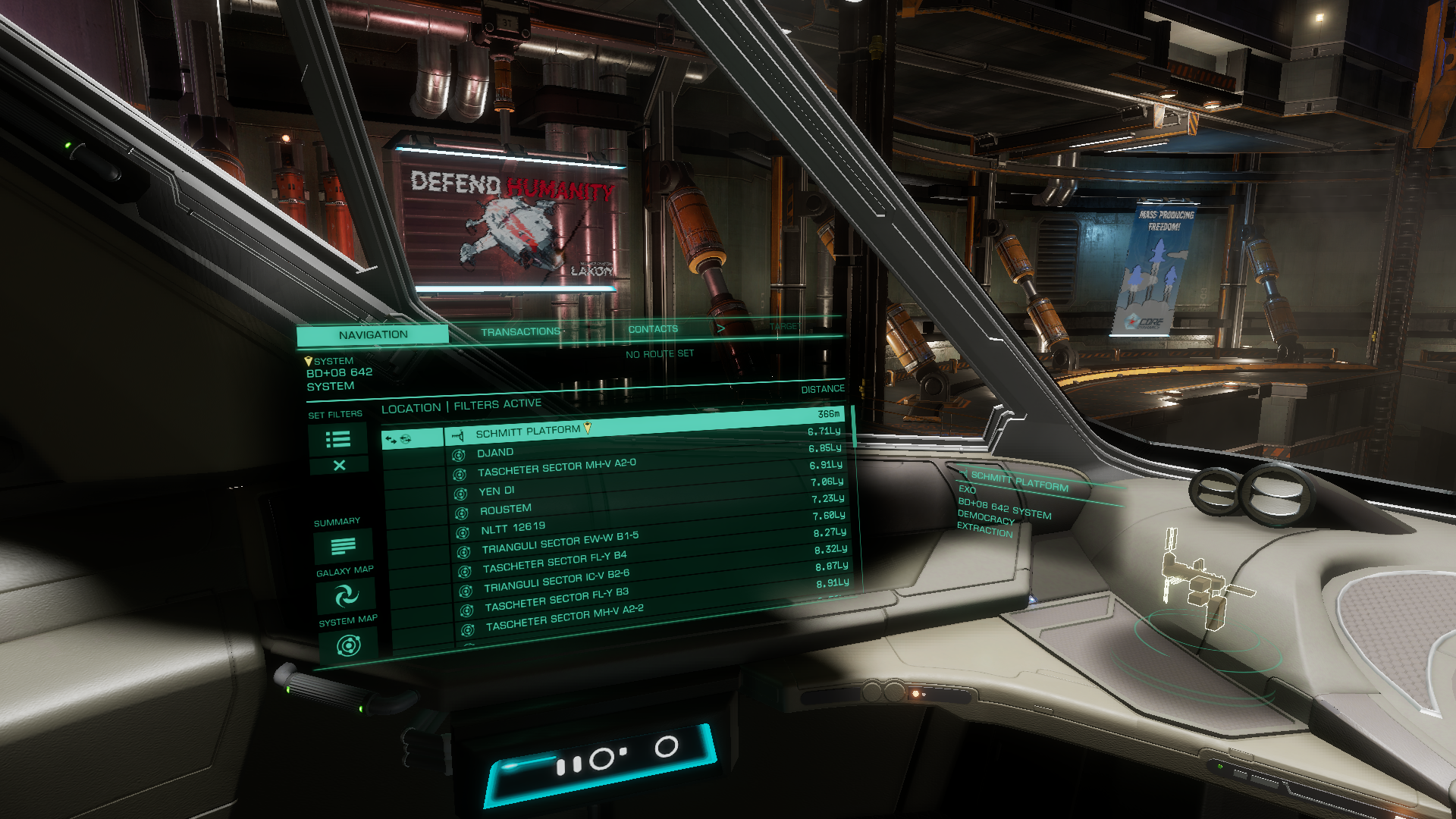 We can safely say that, while the standard orange of Elite Dangerous may appeal to normal PC users, it is a pretty demanding drain on the eyes when playing in VR. At least for me. Luckily, we have cool tools such as the Sethioz HUD Color Editor, with which we can customize the of the cockpit HUD and some UI elements, to make them look better. I found this config to be particularly pleasing for VR: <MatrixRed> 0.05, 0.4, 0.4 </MatrixRed> <MatrixGreen> 0.2, 0.8, 0 </MatrixGreen> <MatrixBlue> 0.8, 0, 0.2 </MatrixBlue> Result: ![]() ![]() ![]() ![]() ![]() ![]() |