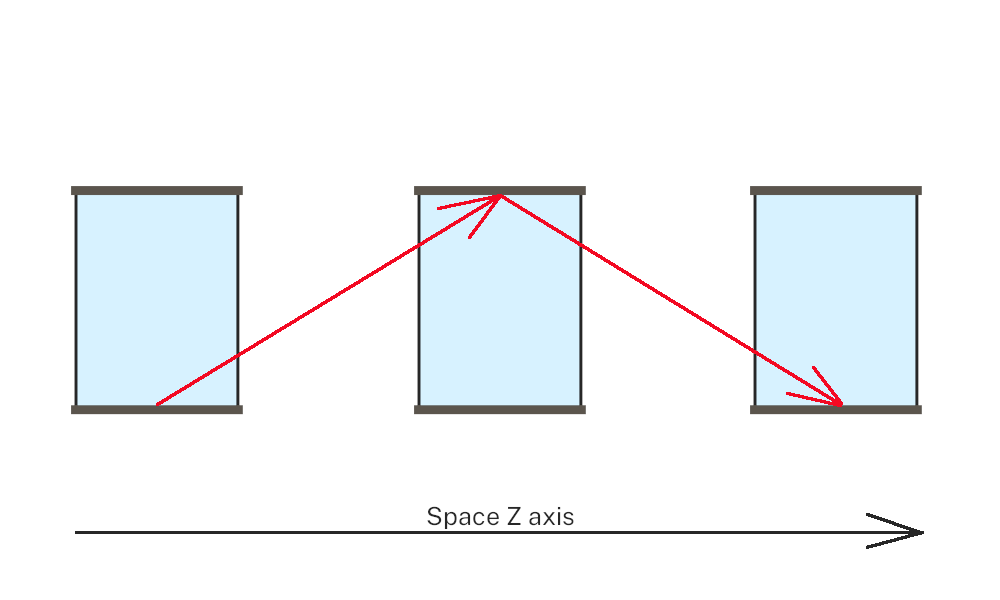 Inside the container there is a beam of light constantly being reflected from the top and bottom mirrors, thus being reflected infintely inside that container. When you as the pilot look at the container, you would see nothing out of the ordinary: a straight line inside which the beam goes back and forth.